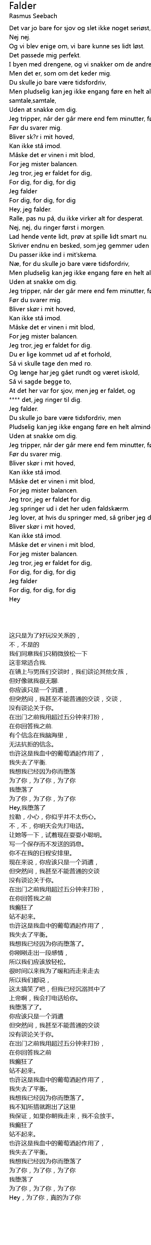 | [02:00.90] | Jeg falder. |