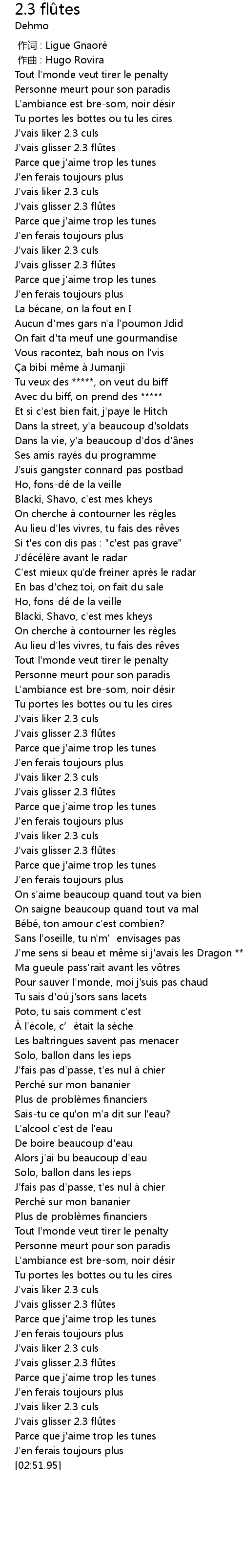 | [02:38.46] | J'vais liker 2.3 culs |