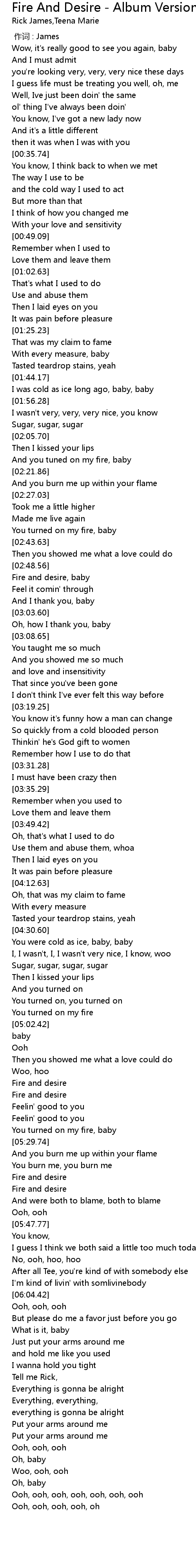 | Song | Fire And Desire - Album Version |