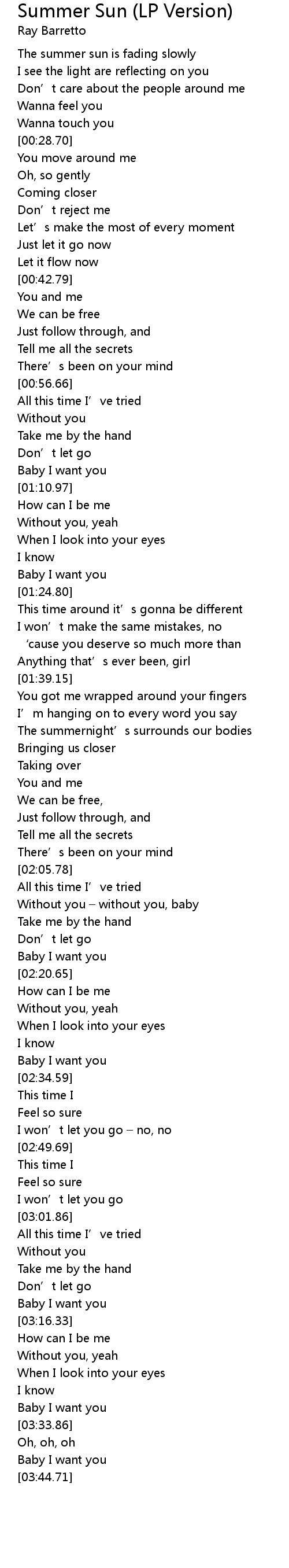 | Song | Summer Sun (LP Version) |