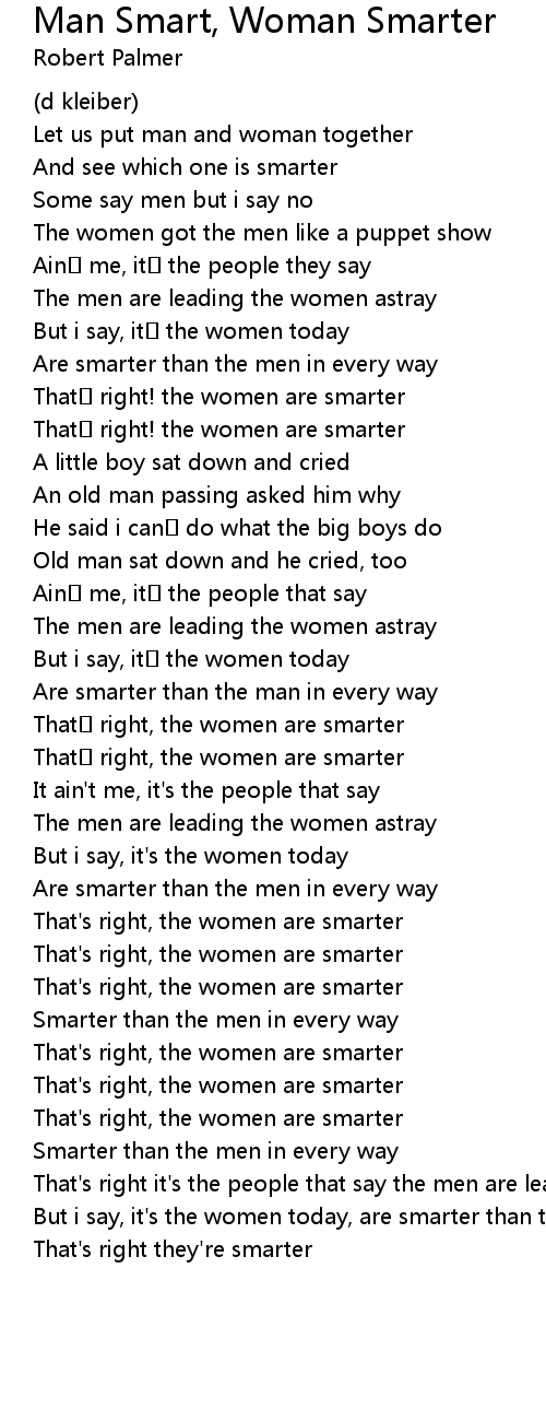 | But i say, it's the women today, are smarter than the men in every way | |
