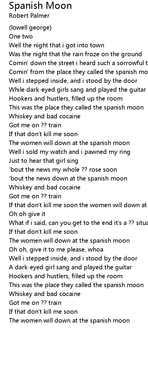 If that don't kill me soon the women will down at the spanish moon |