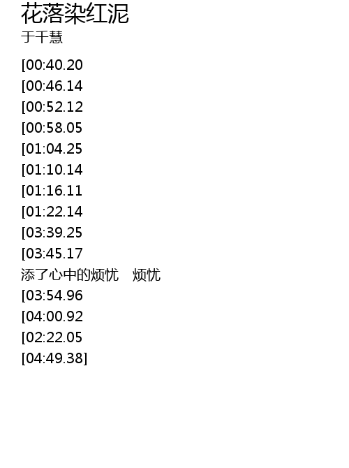 | [03:04.22][00:52.12] | 花落染红泥啊聚散无痕迹 |