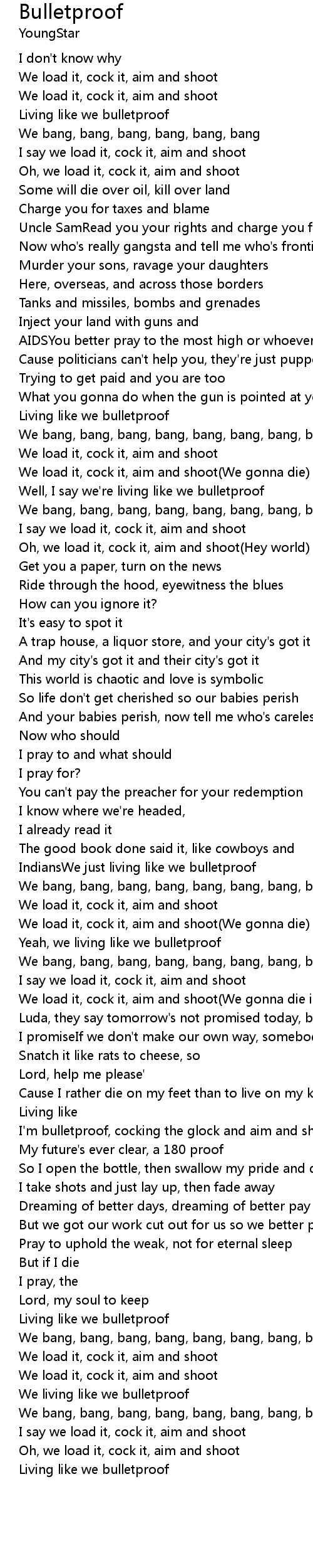Oh, we load it, cock it, aim and shoot(Hey world) |