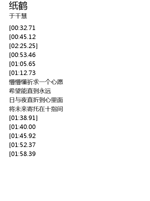 | [02:17.73][00:45.12] | 抬起脸 望着天 一片接一片 |
