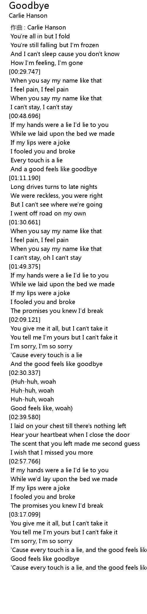 | [03:51.729] | ' Cause every touch is a lie, and the good feels like goodbye |