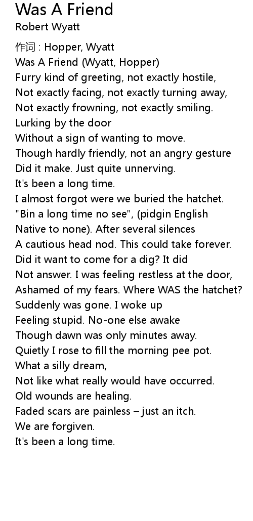 | Was A Friend (Wyatt, Hopper) | |