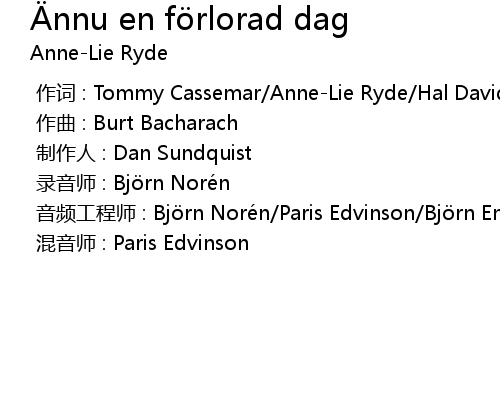 | [00:00.000] | 作词 : Tommy Cassemar/Anne-Lie Ryde/Hal David |