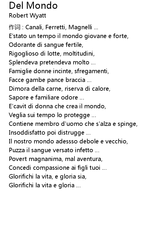 | 作词 : Canali, Ferretti, Magnelli ... | |