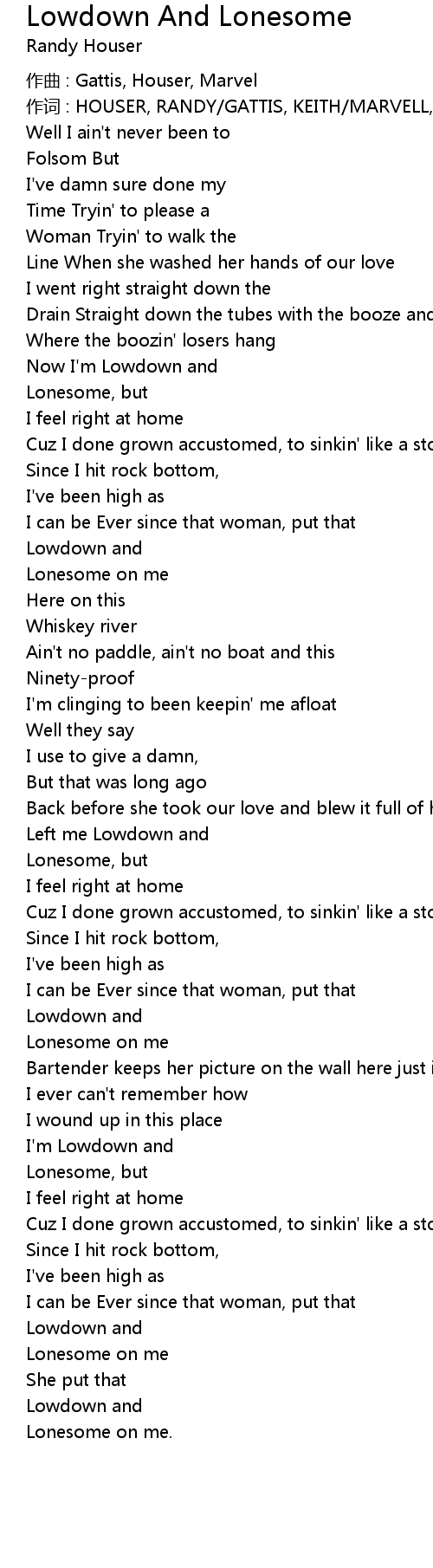 | Song | Lowdown And Lonesome |