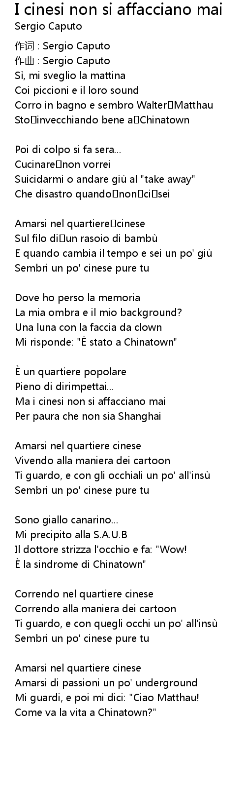 | Song | I cinesi non si affacciano mai |