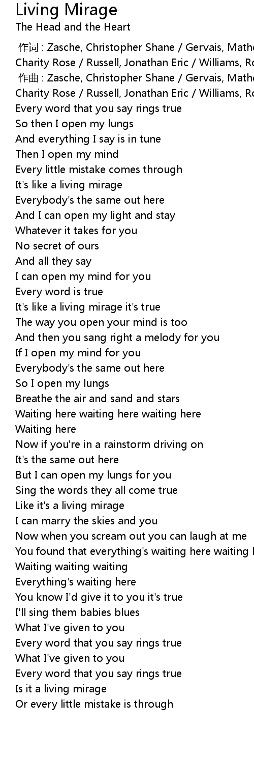 | [00:00.000] | 作词 : Zasche, Christopher Shane / Gervais, Mathew Lee / Thielen, Charity Rose / Russell, Jonathan Eric / Williams, Robert Tyler |
