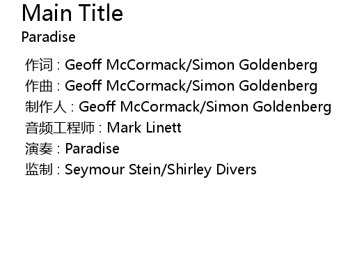 | [00:00.000] | 监制 : Seymour Stein/Shirley Divers |