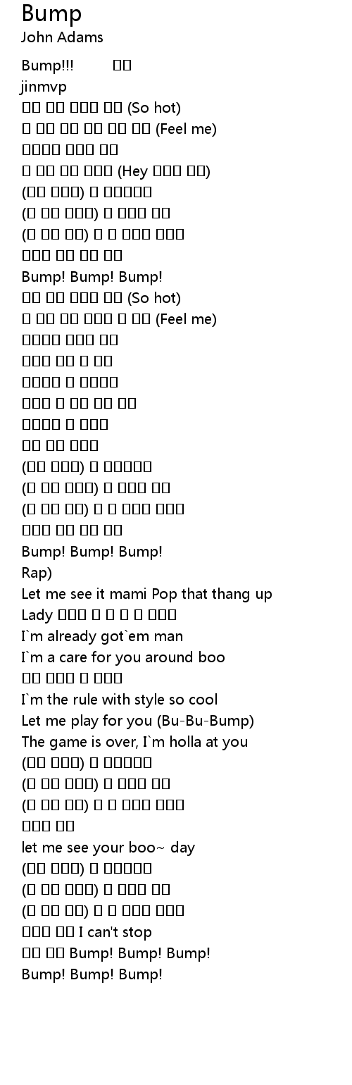 | [03:04.17] | 모든 곳에 Bump! Bump! Bump! |