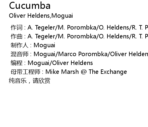 | [00:03.000] | hùn yīn shī : Moguai Marco Porombka Oliver Heldens Roger T. Price |
