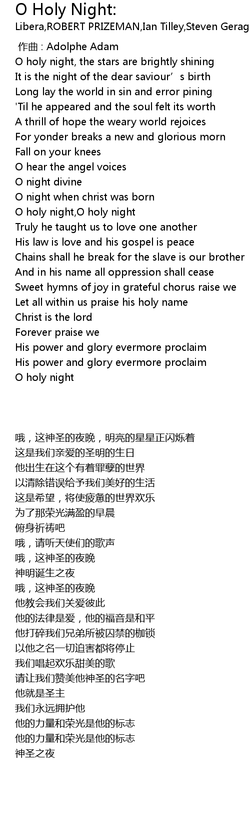 | [00:37.15] | O holy night, the stars are brightly shining |