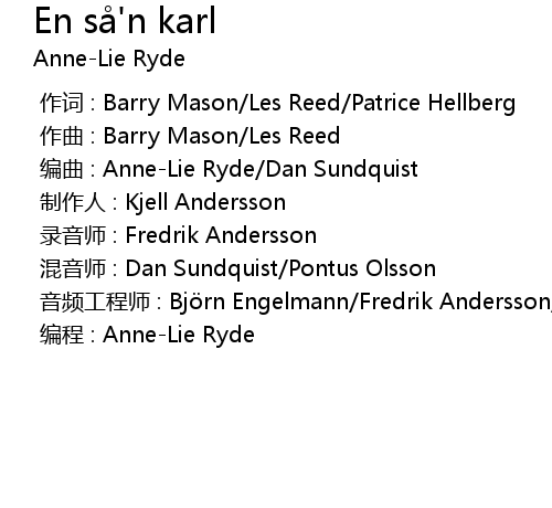 | [00:00.000] | 编曲 : Anne-Lie Ryde/Dan Sundquist |