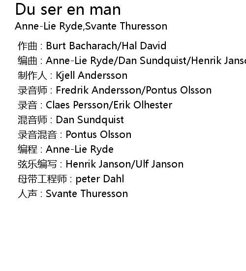 | [00:00.000] | biān qǔ : AnneLie Ryde Dan Sundquist Henrik Janson Ulf Janson |