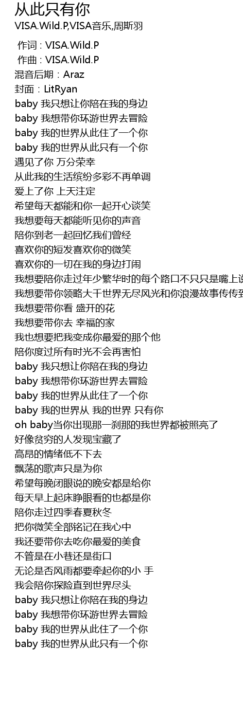 | [02:21.943] | baby 我的世界从此只有一个你 |