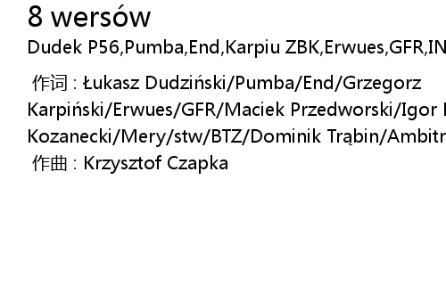| [00:00.000] | 作词 : Łukasz Dudziński/Pumba/End/Grzegorz Karpiński/Erwues/GFR/Maciek Przedworski/Igor Kowalski/Patryk Kozanecki/Mery/stw/BTZ/Dominik Trąbin/Ambitny Dzieciak |