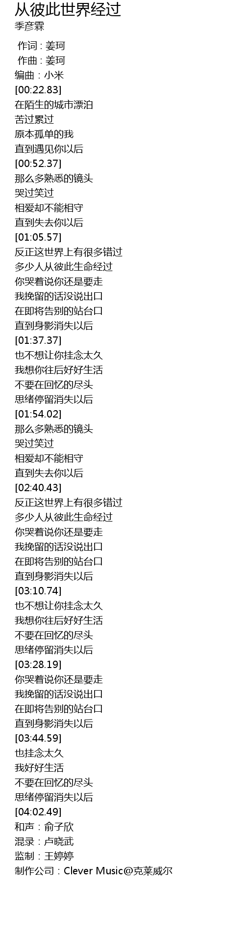 | [02:47.84] | duo shao ren cong bi ci sheng ming jing guo |