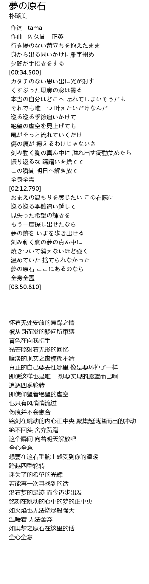 | [03:38.430] | 夢の原石 ここにあるのなら |