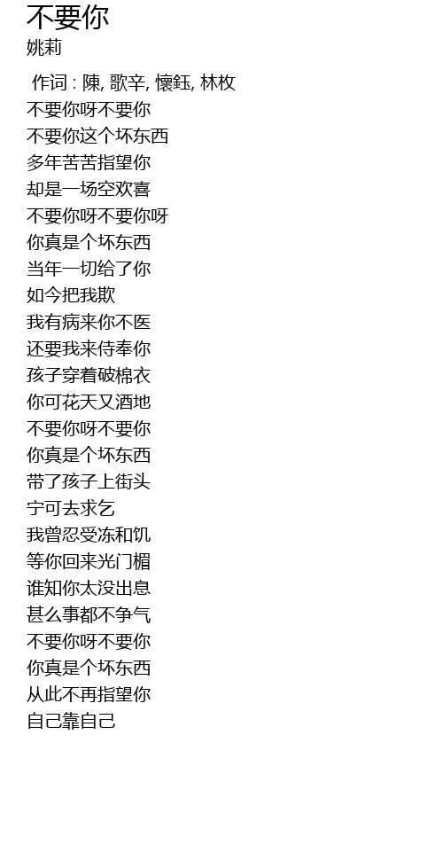 [00:13.20] bú yào nǐ ya bú yào nǐ
