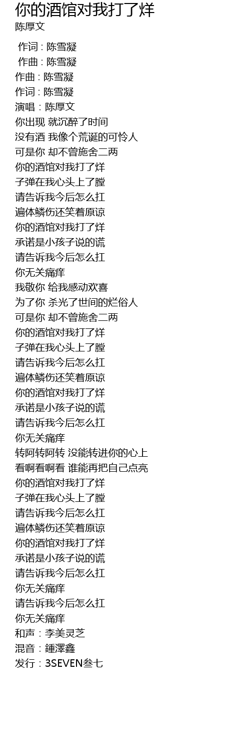 | [03:28.177] | 你的酒馆对我打了烊 |