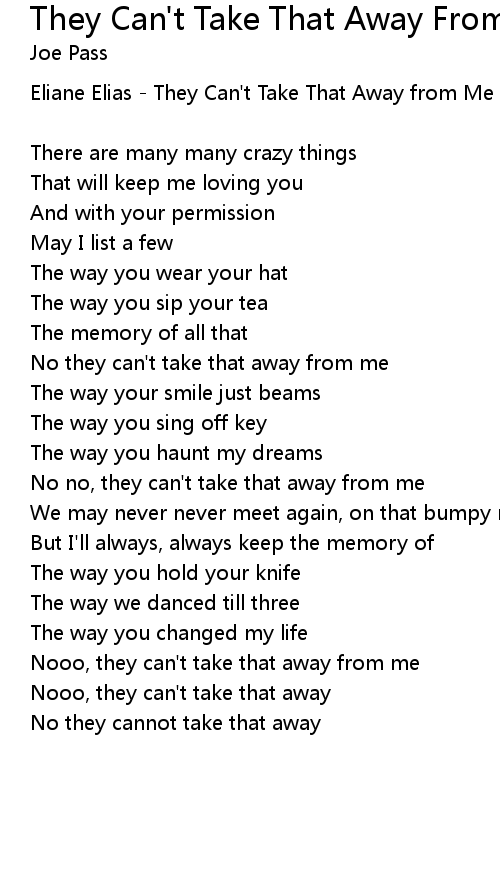 No they can't take that away from me |