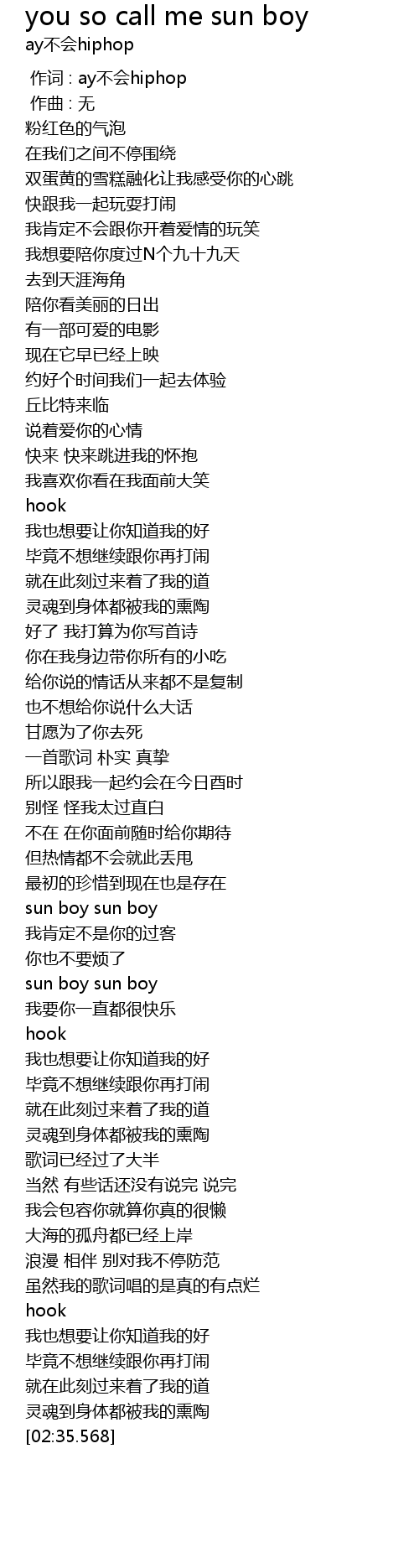 | [00:00.000] | zuo ci : ay bu hui hiphop |