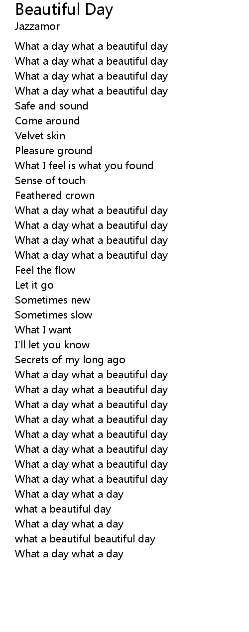 What a day what a beautiful day |