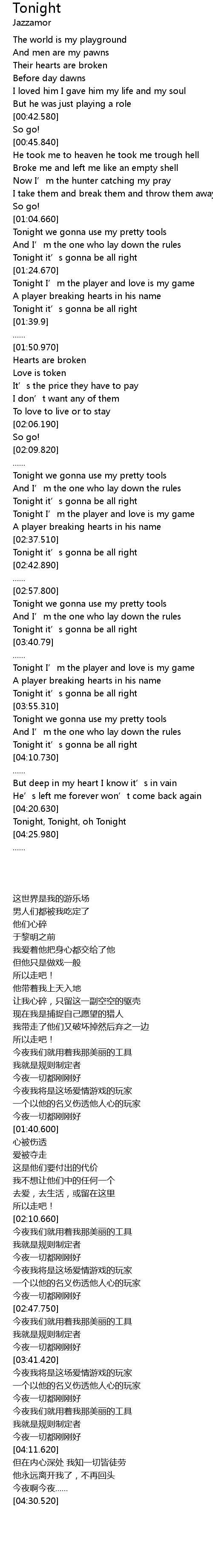 | [02:30.790] | Tonight I' m the player and love is my game |