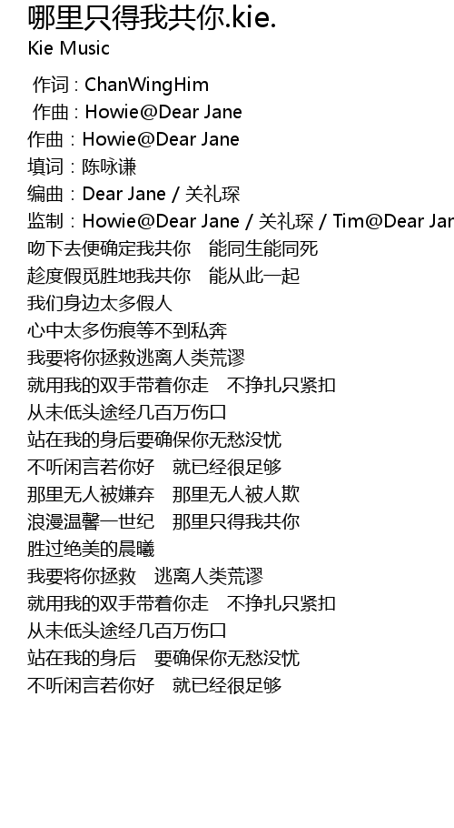 | [00:01.000] | 作曲 : Howie@Dear Jane |