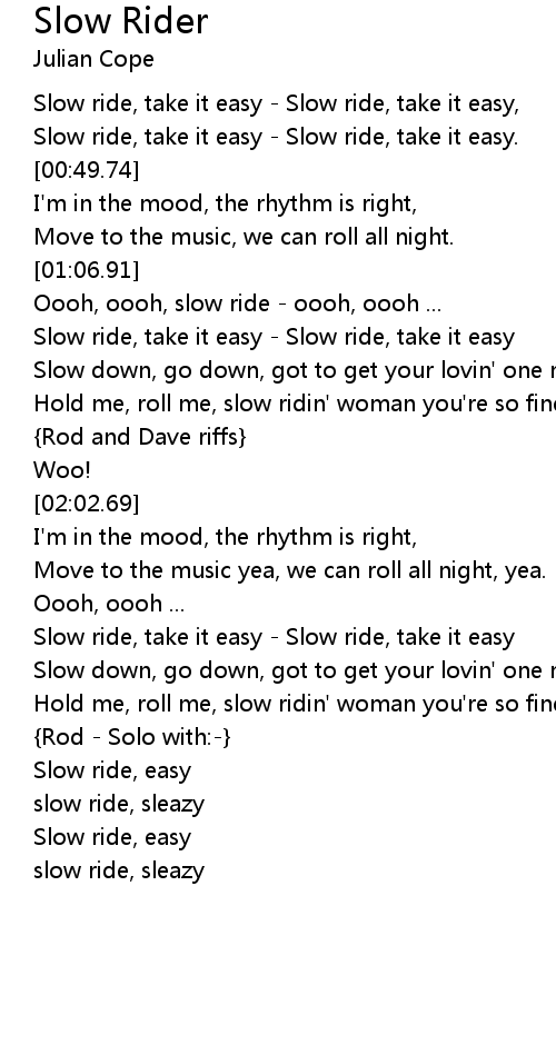 Oooh, oooh, slow ride - oooh, oooh ... |
