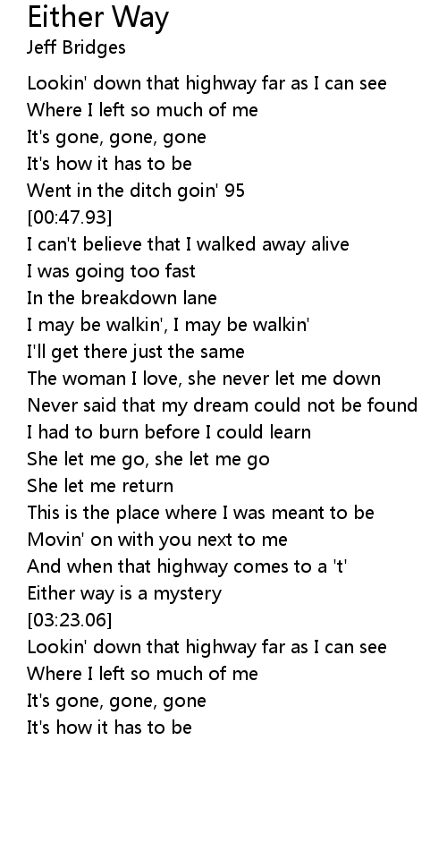 Lookin' down that highway far as I can see |
