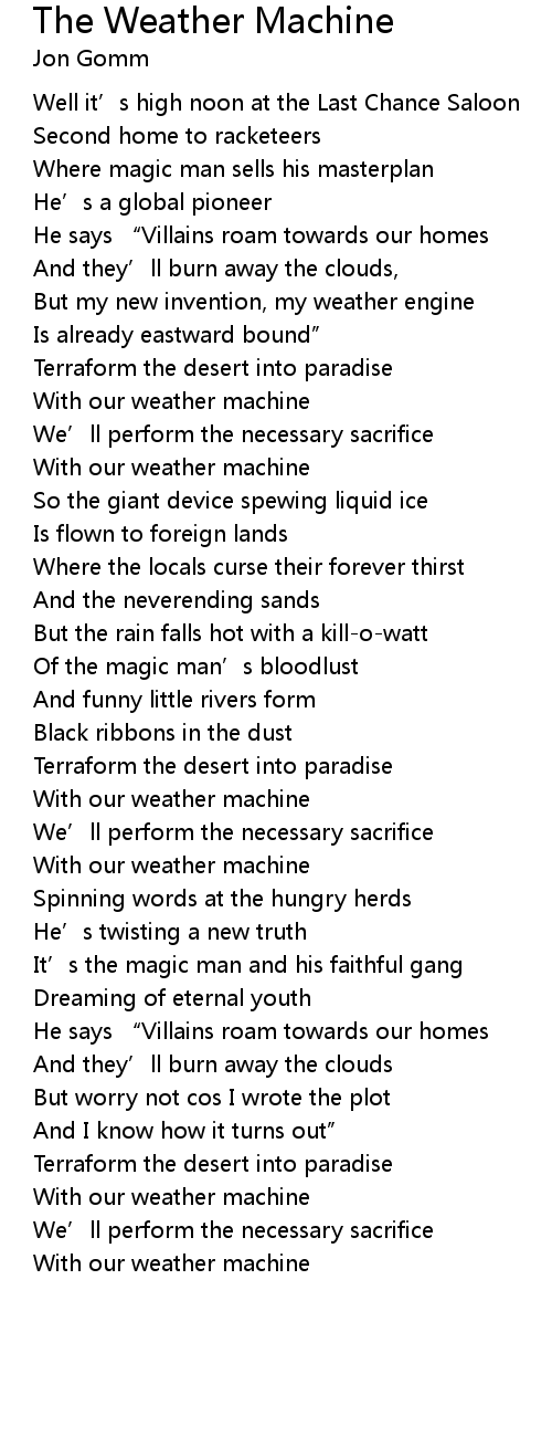 | Song | The Weather Machine |