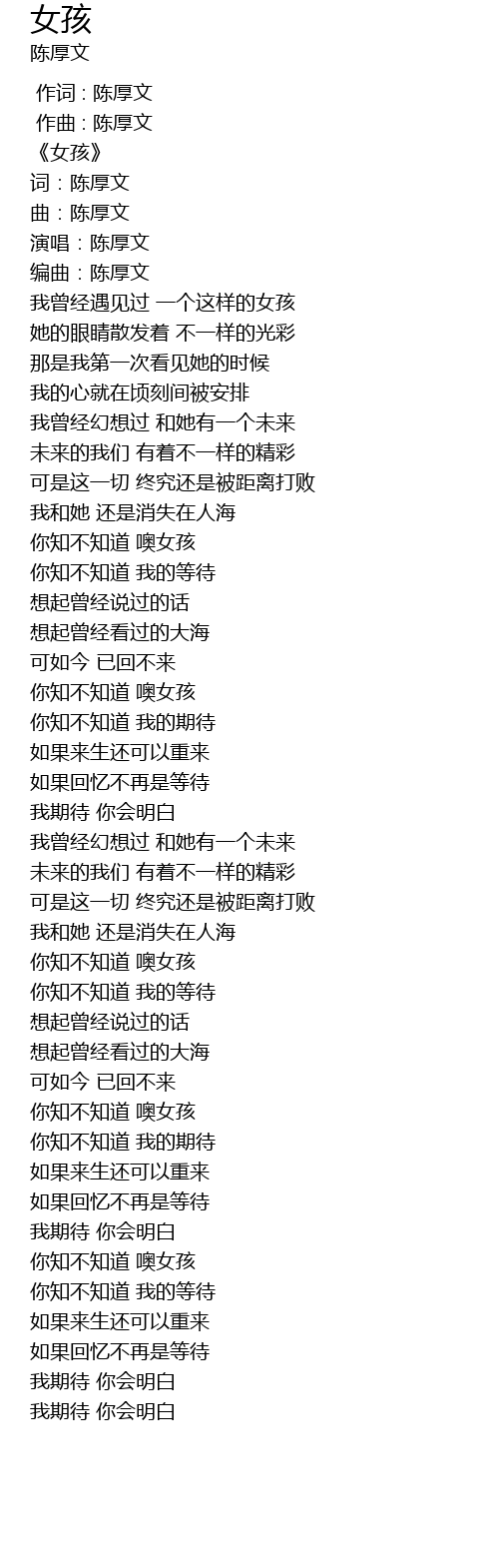 | [00:14.453] | 我曾经遇见过 一个这样的女孩 |