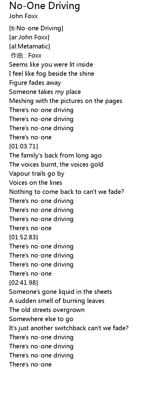 | [00:52.45] | There' s noone driving |