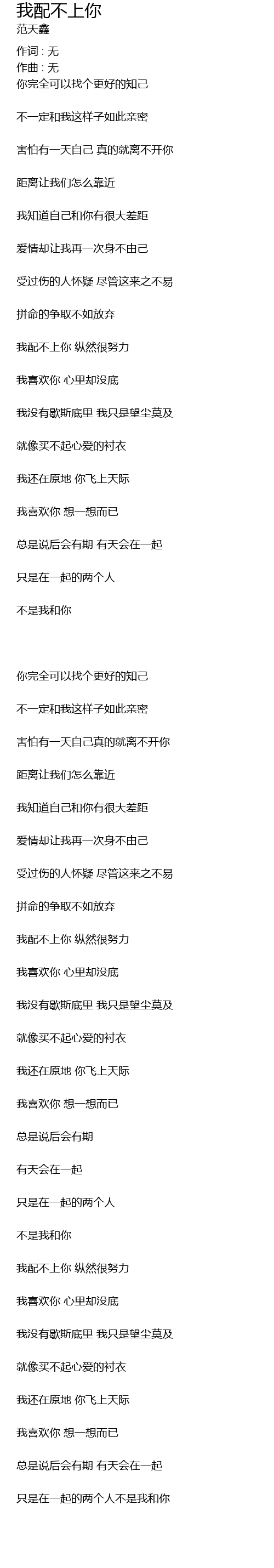 | wǒ pèi bù shàng nǐ zòng rán hěn nǔ lì | |