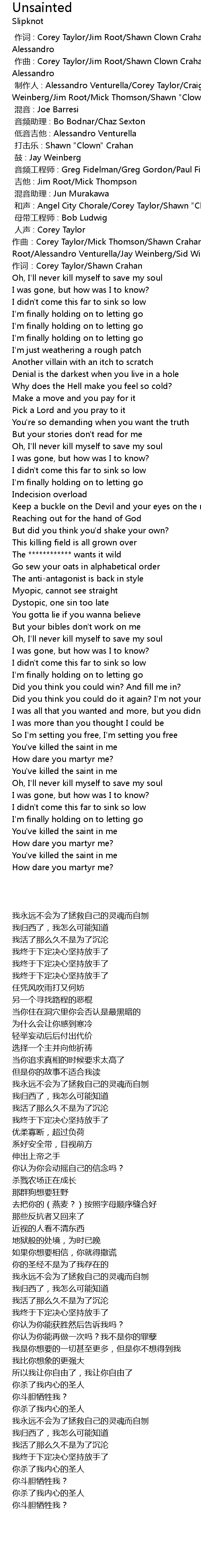 | [00:01.90] | zuò qǔ: Corey Taylor Mick Thomson Shawn Crahan Craig Jones Jim Root Alessandro Venturella Jay Weinberg Sid Wilson |