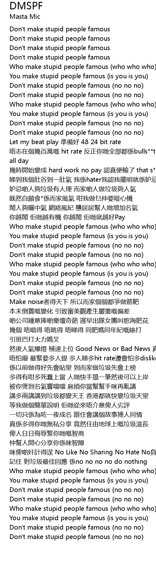 | [00:12.447] | Don't make stupid people famous |