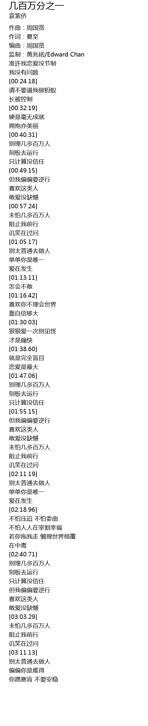 | [02:03.79] | 未怕几多百万人 |