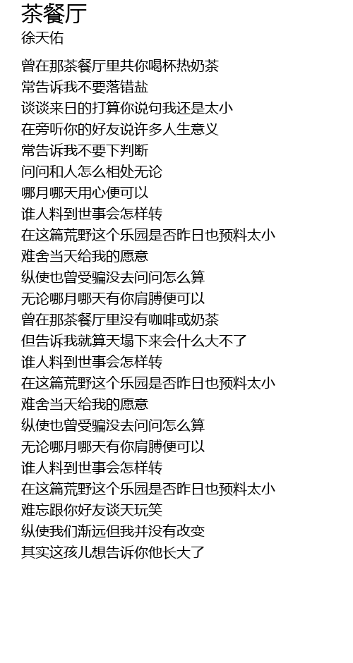 | [01:45.195] | 曾在那茶餐厅里没有咖啡或奶茶 |