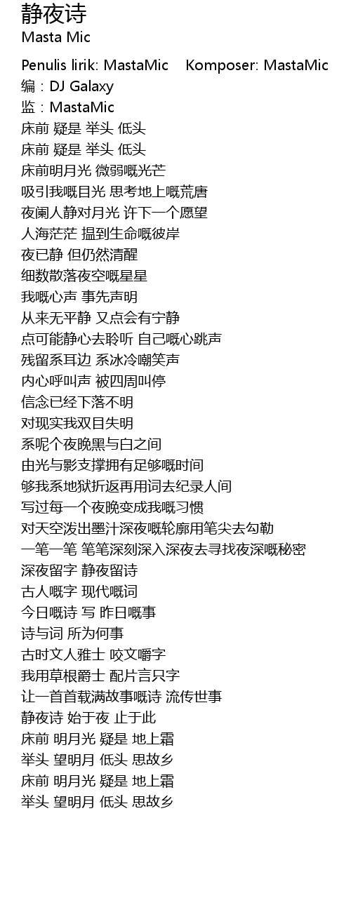 | [00:00.719] | Penulis lirik: MastaMic Komposer: MastaMic |