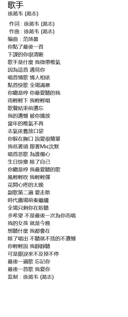 | [00:00.000] | 作词 : 徐澔韦 (澔志) |