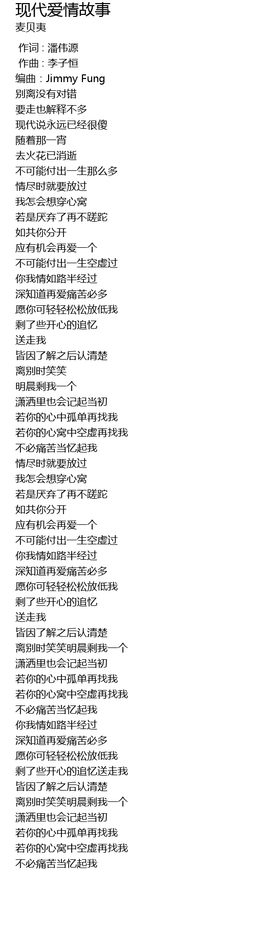 | [00:13.09] | 编曲:Jimmy Fung |