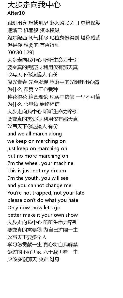 | [00:33.844] | 大步走向我中心 听听生命力牵引 |