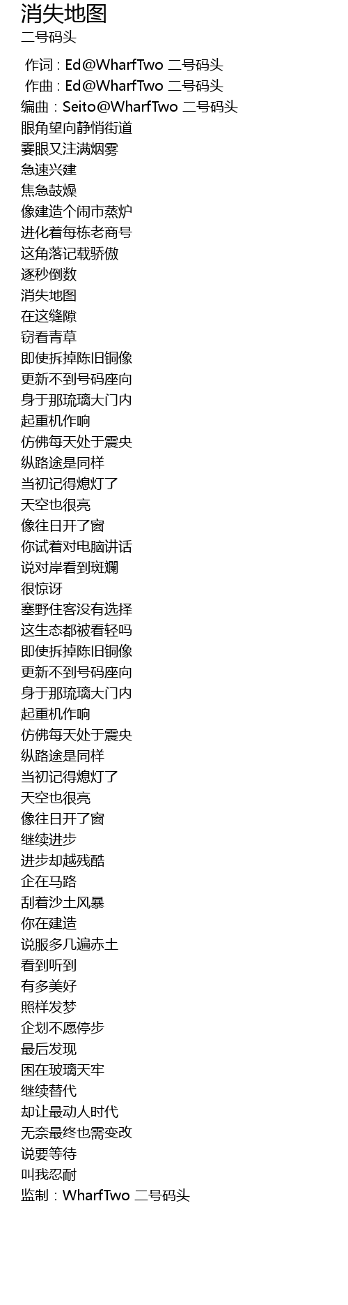 | [04:50.50] | 监制:WharfTwo 二号码头 |