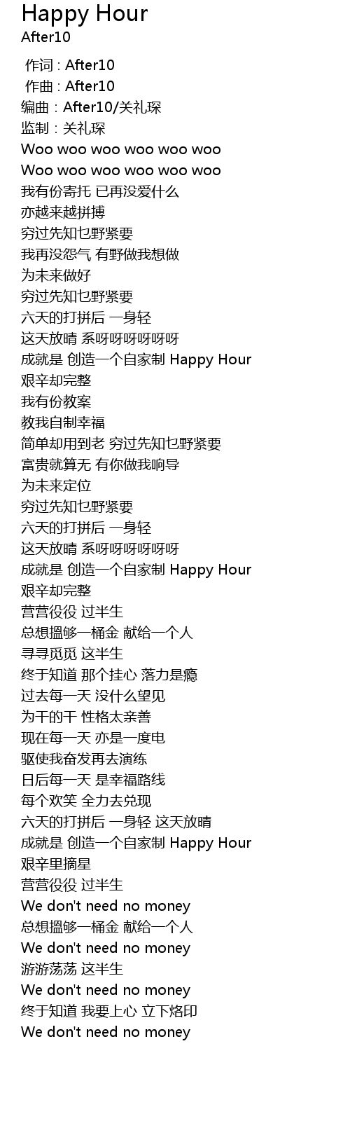| [01:21.10] | cheng jiu shi chuang zao yi ge zi jia zhi Happy Hour |