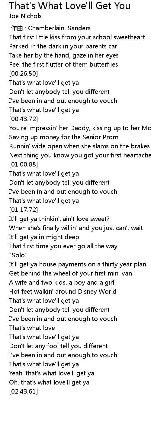 | [02:36.73] | Yeah, that' s what love' ll get ya |